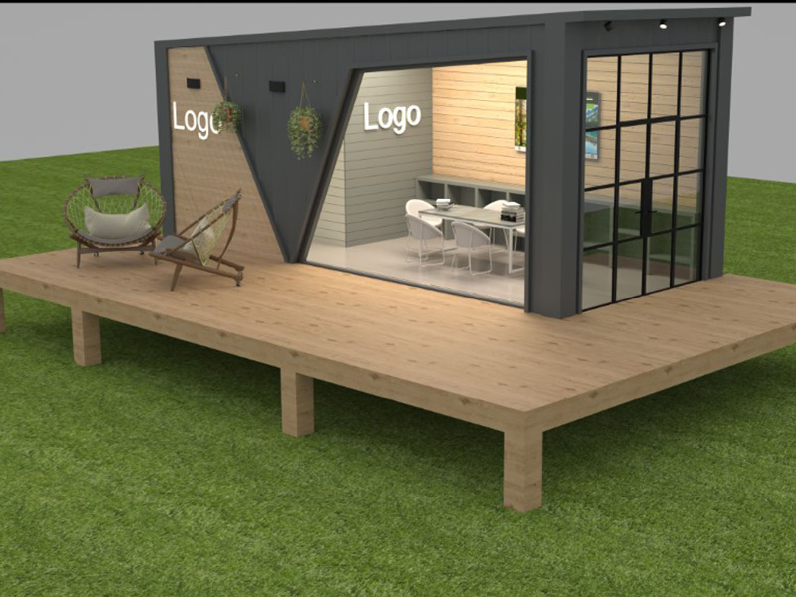 15 m2 alan römork ile oluşturulmuş modüler mimari taşınabilir ofis olarak tasarlanmıştır.